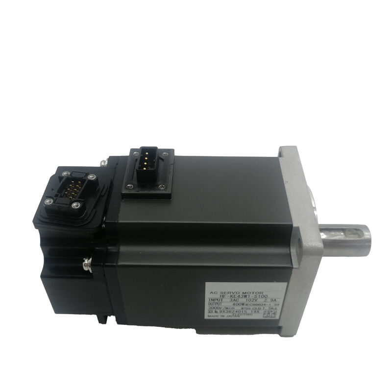 The Mitsubishi HF-KE43W1-S100 is a 400W low inertia AC servo motor from the HF-KE series, configured with a standard straight plain shaft, no electromagnetic brake, and a 131,072 ppr incremental encoder for the Super MR-E amplifier platform.